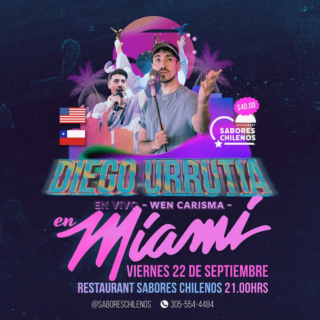 Sabores Chilenos Restaurant presenta a Diego Urrutia con su Wuen Carisma Tour.Ven y disfruta el talento del triunfador de Vina 2022*Llegar con tiempo para cenar* Estacionamiento gratisQUE NO TE LO CUENTEN!!!